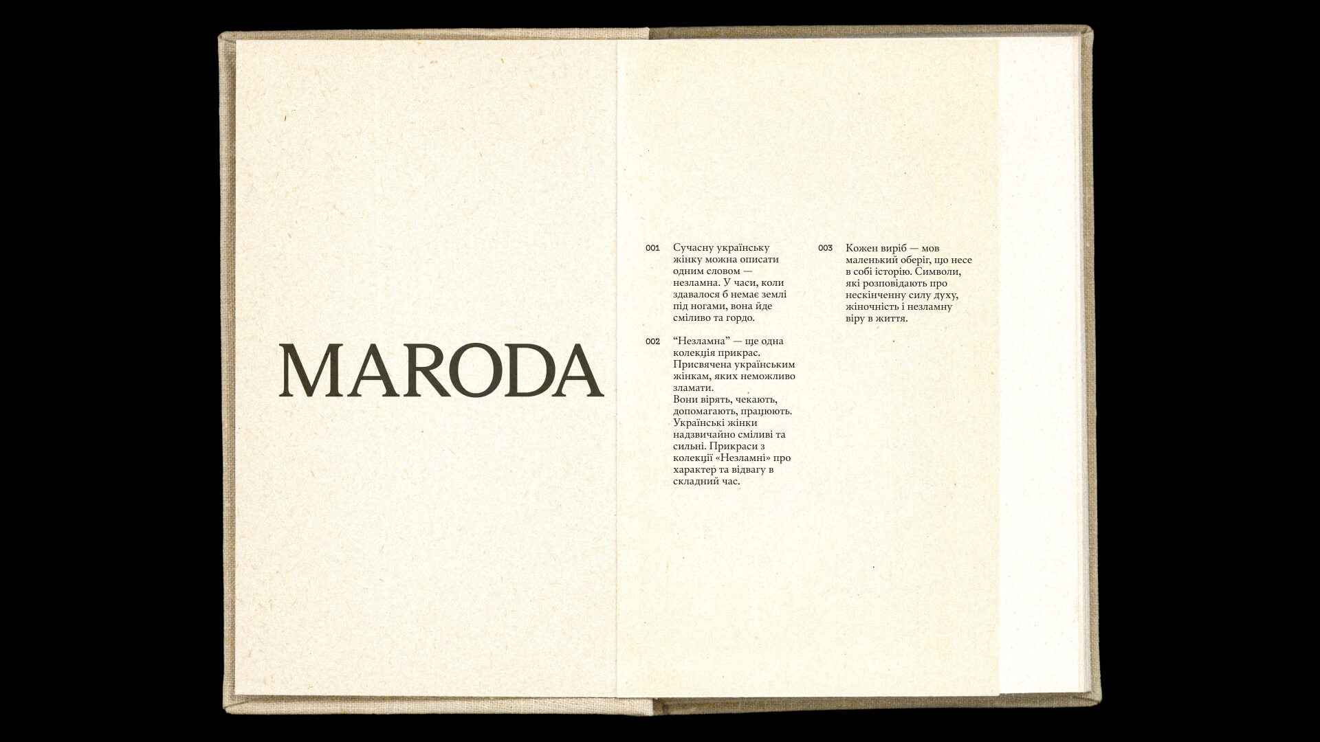 Кожна прикраса постає як символ зв’язку між поколіннями — між жінками, між минулим і теперішнім. Щоб знайти візуальну мову для цього образу, ми звернулися до дослідження української культури та історії. Важливим джерелом стала книга — як фундамент, що несе культурні прояви українців крізь століття.