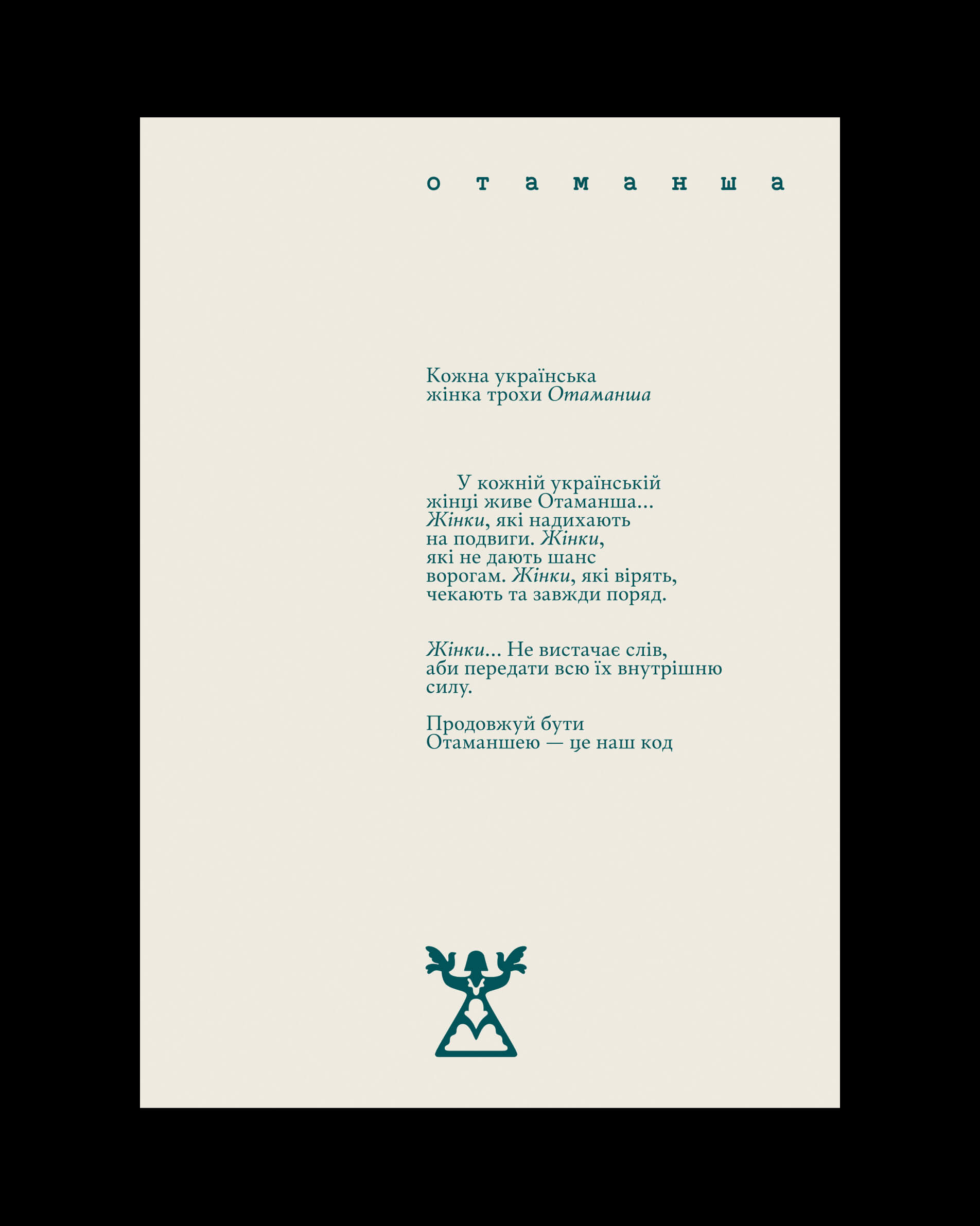 У центрі — образ зрілої жінки та її м’якої сили: здатності шанувати минуле, залишаючись відкритою до нового. Це не про радикалізм, а про пошук свого — через пам’ять, ніжність і красу. На цьому перетині і народжується знак, що спирається на образ прадавньої Берегині — одного з найглибших позачасових архетипів української культури.